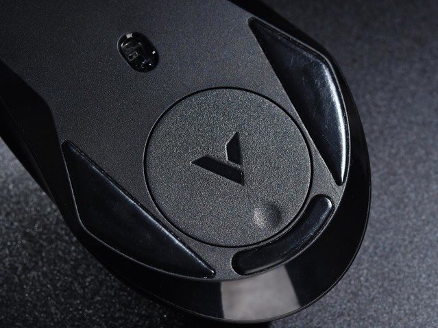 这款鼠标的2.4GHz无线接收器储物槽设计在底部,并采用圆形磁性仓盖。这个仓盖的设计类似于罗技GPW,所以我们当时也推测雷柏会推出这里安装的无线充电模块。