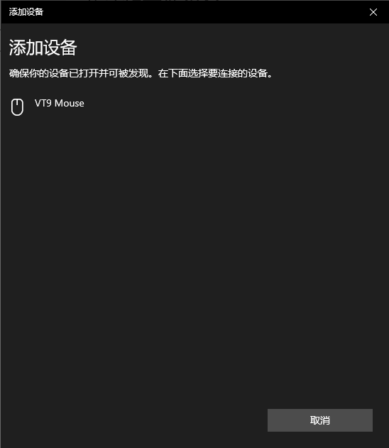 选择“VT9MOUSE”在设备的蓝牙列表中完成配对和连接,鼠标指示灯熄灭。