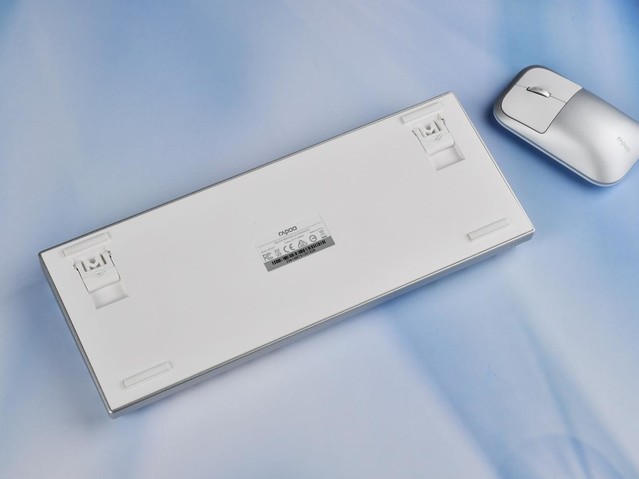雷柏 MT510机械键盘采用简约风格设计,金属外壳磨砂质感,边缘切边设计,使手部摆放更加舒适,与之前生产的MT510PRO版本相同。该键盘采用84键配置,整体尺寸约为310.1mmx120.2mmx35.5mm,重量约为717g,无线模块和电池模块较少,重量也较小,更适合外出携带。