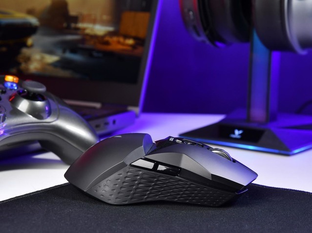 雷柏 VT950S电子竞技游戏鼠标采用11键编程设计。鼠标的两个主键从雷柏的微动变成了我们非常熟悉的欧姆龙蓝点(50m)。它的手感清脆,段落感适中。这种微动手感更柔软舒适,按键一致性好。在实际测试过程中,VT950S的主键体验比它的前代作品更加强硬,没有拖泥带水的感觉。这一进步值得肯定。