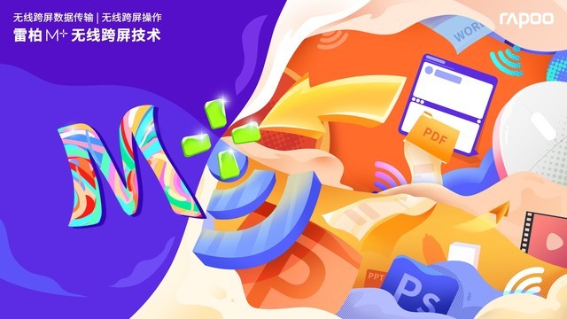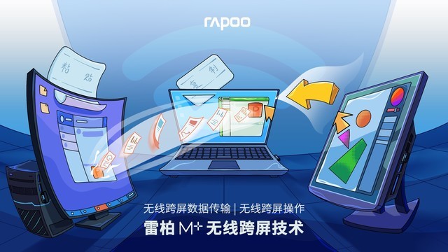 2023年,雷柏M+无线跨屏技术发布,无线跨屏数据传输,无线跨屏操作,打破设备孤岛,使商务办公更加智能化。