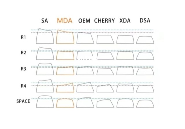 球帽SA和DSA高度比较容易分辨SA高度从侧面看没有明显的人体工程学曲线;DSA则有符合人体工程学的曲线。总得来说,除了SA和DSA在使用上有明显区别,其余高度在成套使用时并不会有明显区别。