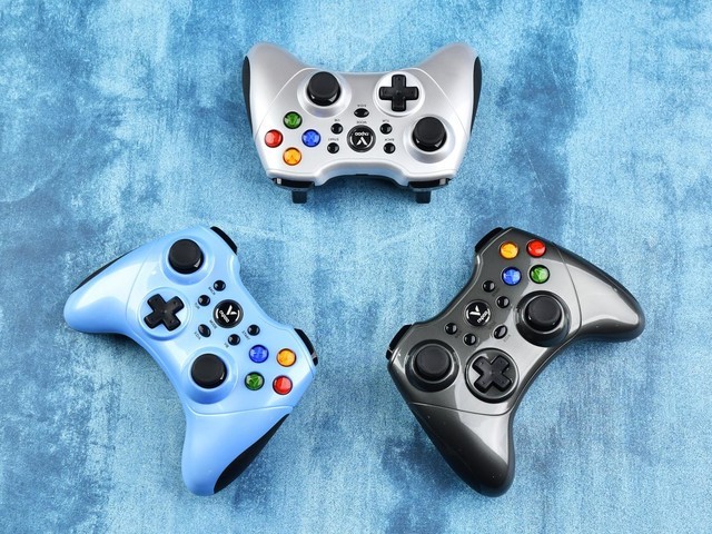 雷柏 V600S无线双模振动游戏手柄提供了远峰蓝、深空灰和星光银三种不同的配色方案可选。机身通体PC材质,手柄的上表面采用珠光处理。它的操作面板具备人体工学设计,握柄处贴合手掌曲线,握持感非常好。手柄两侧拥有防滑设计,能够给我们的手掌带来更好摩擦力,形成良好握感。
