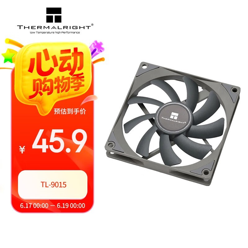 利民 TL9015 9cm超薄风扇来啦。这款风扇采用液压轴承,尺寸为9.2cm9.2cm15mm,是薄扇设计,拥有9扇叶。利民 TL9015的风扇转速可达2700RPM,能提供42.58CFM的大风量,同时噪音低至22DBA。利民 TL9015 4PIN接口支持PWM调速,还提供三年质保。