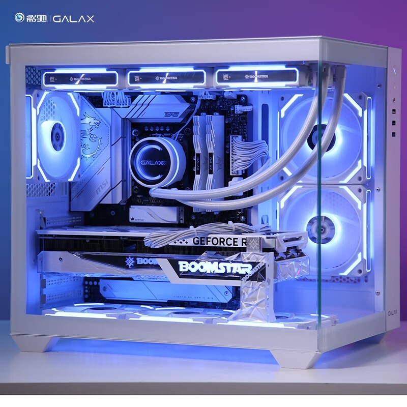 影驰 沐光PLUS白色海景房电脑机箱(无立柱/快拆结构/兼容背插式主板/ATX主板/360水冷/295mm宽体)