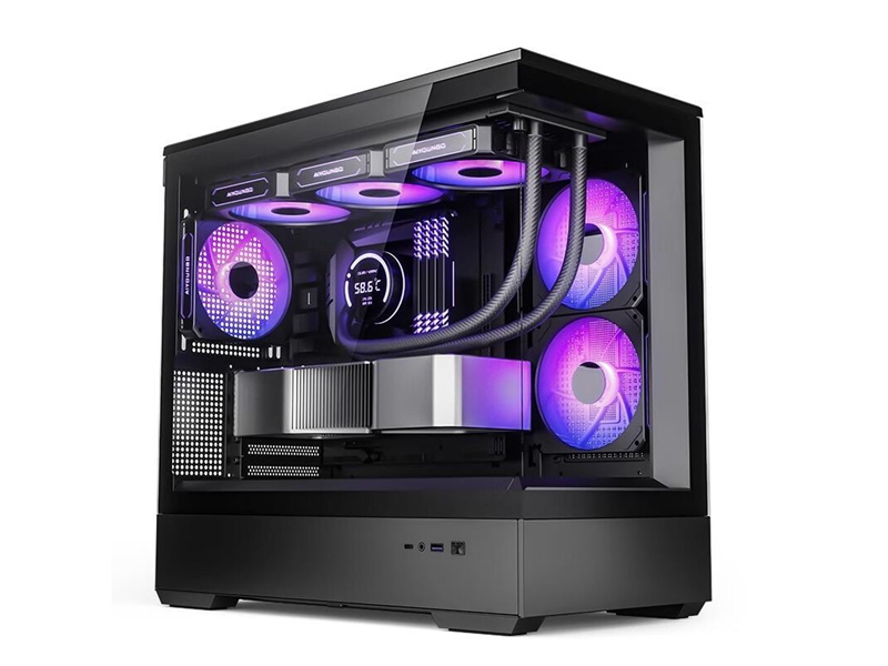 爱国者 星璨岚海景房机箱电脑台式机电竞游戏支持360水冷鱼缸纯白色无立柱MATX全侧透 星璨岚 黑