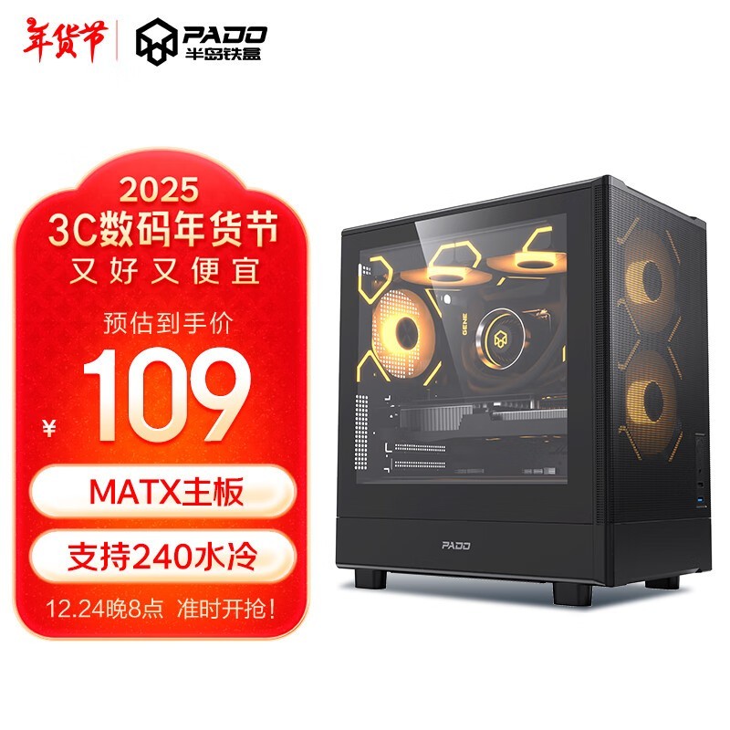 半岛铁盒 风度4 机箱台式机MATX侧透240水冷台式电脑主机箱 黑色/7扇位/多网孔散热