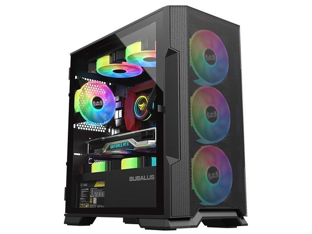 大水牛 守护者S203 黑色 玻璃全侧透电脑机箱(顶置240水冷位/支持M-ATX/台式主机机箱/8风扇位)