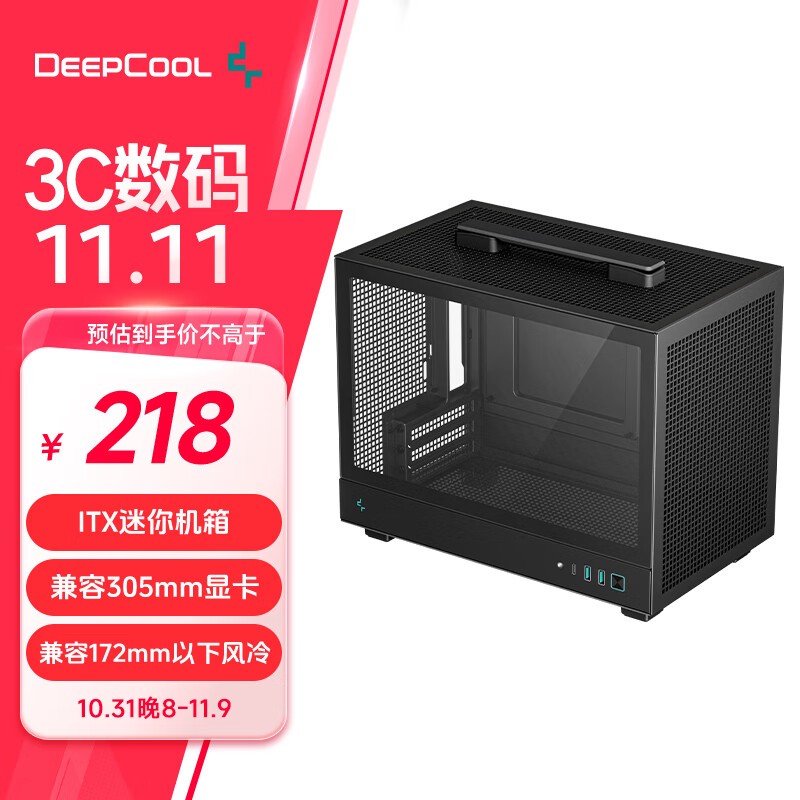 九州风神 GP-CH160 ITX机箱(可拆卸提手机箱/172mm风冷/长显卡/SFX电源/Type-C)