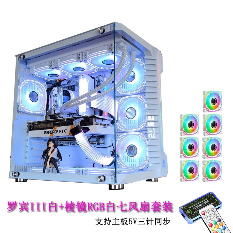 玩嘉 罗宾III白+棱镜RGB七风扇套装宽体侧透玻璃机箱水冷电脑主机箱III海景房ATX大板/360水冷4090显卡