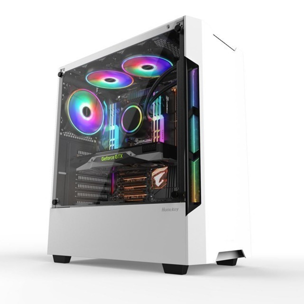 航嘉 GX580H新品中塔台式机箱,炫酷侧透设计和酷炫风扇位配备,让您的主机RGB光效毫无保留的展现,炫彩缤纷,仿佛宇宙的璀璨星云。
