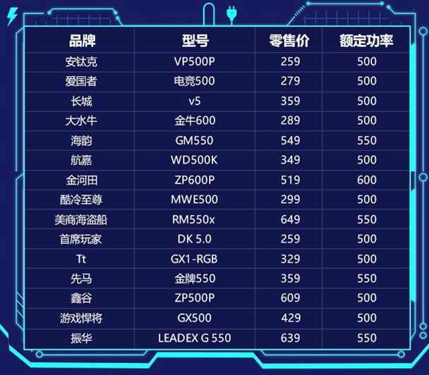 本次横评的电源除了安钛克的VP500P之外,其他产品全都标注了80 PLUS认证,低至铜牌高至白金牌,看起来很赞是不是?实测数据表明,还是不能全信产品标识。