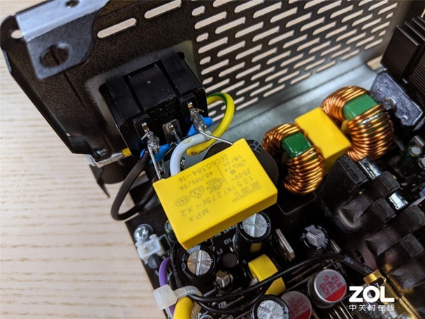 电源的二级EMI电路齐全,主电容采用了日系390微法电容,搭配输出端的台系固态加点解电容有效降低了输出纹波,让电源在不同环境下也能保证输出的纯净。