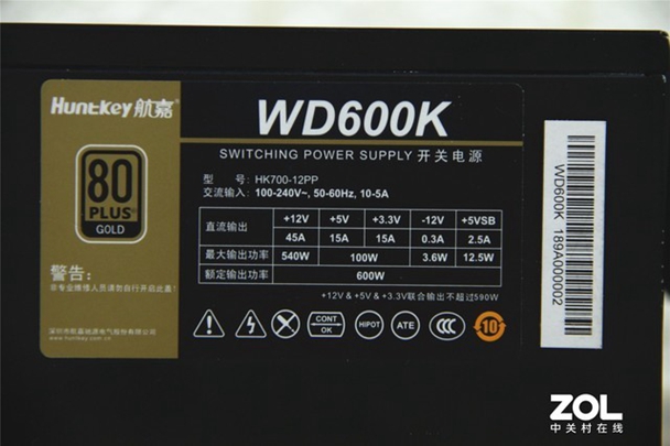 航嘉 WD600K电源的额定功率600W,可以通吃RTX3060以下的单卡游戏平台,电源通过了80 PLUS金牌认证,单路12V输出达到了45A即540W,可以为主流硬件提供充足的供电支持。