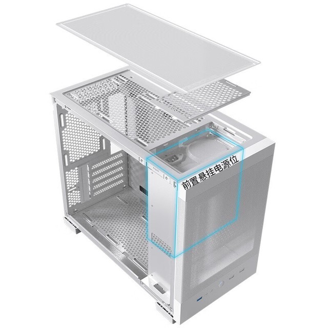大水牛 寒武纪 玄铁版 白色 台式主机电脑机箱(前置悬挂电源位/支持M-ATX/240水冷位/全面透风)