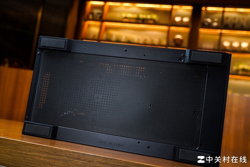 底部配备四个较高的防滑脚垫,采用超大面积的镂空设计并配备磁吸防尘网,大幅提升冷空气从下方吸入的效率,搭配顶部的水冷排散热,形成科学的对流风道。