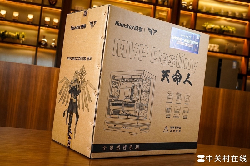 内层使用了非常厚实的硬纸板,侧面的内容,包括空心字体的“MVP Destiny”字体和毛笔字的“天命人”,以及机箱的效果图,纸箱的一端还有薇澜的2次元形象。除此之外,上面的贴纸还表明,航嘉还是玉麒麟CS2全国第二届高校联赛机电散唯一指定合作伙伴。