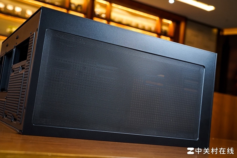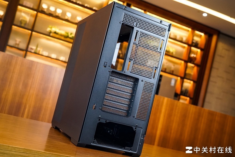 右侧板为整块钢板,靠近前面板的位置有大面积的通风孔,而这个位置在机箱内部对应三个风扇位,可进一步提升机箱的进风效率。