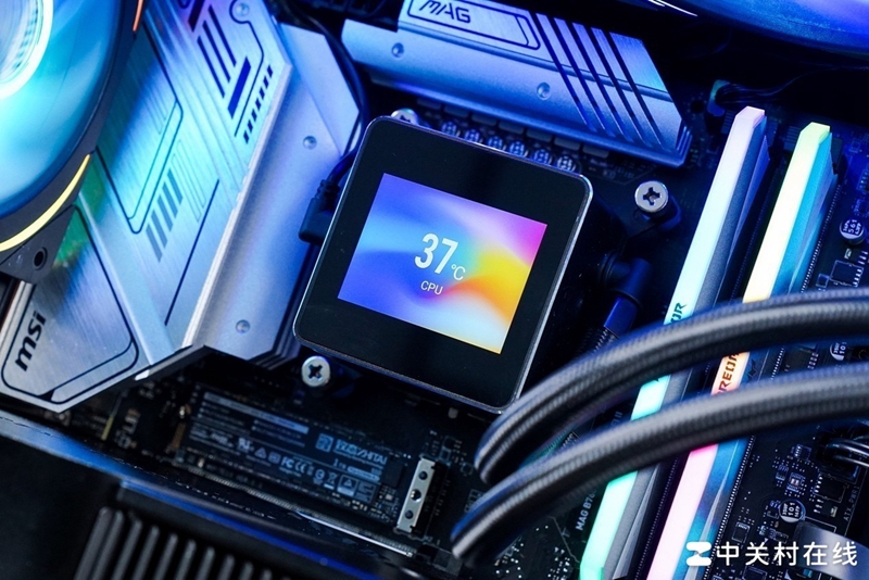 航嘉这款带有显示屏的液冷散热器的效果非常赞,CPU温度监控一目了然。