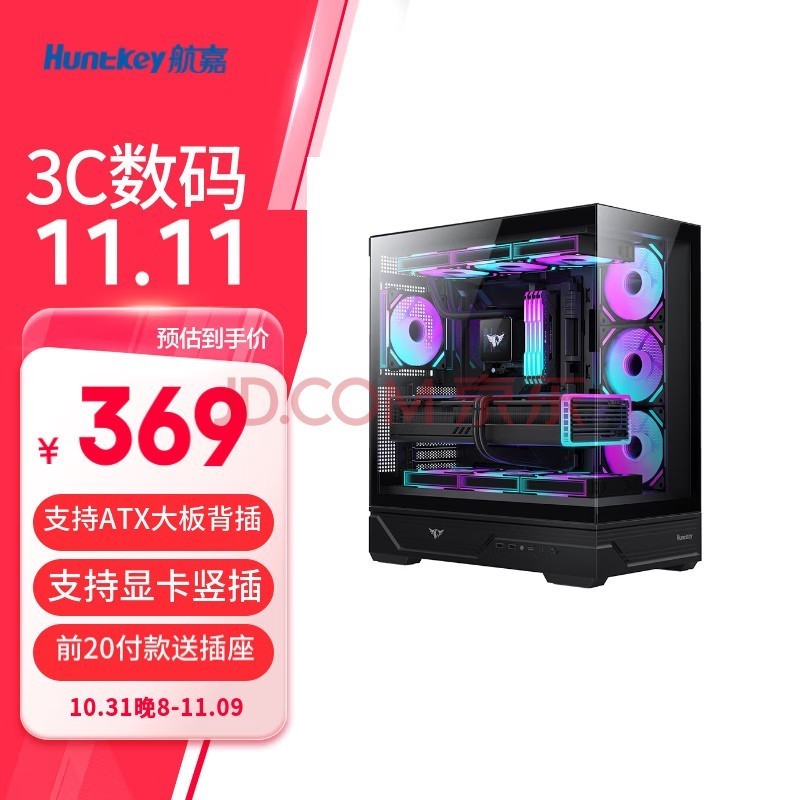航嘉(Huntkey)MVP Destiny 天命人 游戏电脑台式主机箱 支持ATX主板背插/360水冷/Type-C接口/快拆270°海景房 黑色(支持主板背插/Type-C接口/双360)