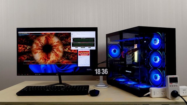 不过这两个高能配件也是两个电老虎,例如RTX 4080 SUPER满载功率高达320W,而酷睿i9-13900K的满载功耗也达到320-330W左右,那么实际的运行情况会怎么样?我们在这两个基本配件的基础上,搭配航嘉MVP P1200电源来展开一次“双修”高压测试。