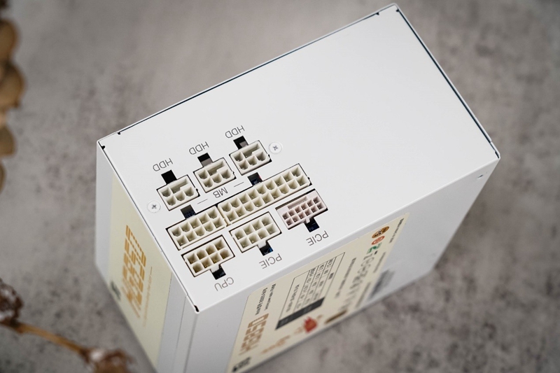 电源在输入端有一个独立开关方便玩家切断电源,输出端则采用了全模组线材设计,百盛高能HG850提供了ATX3.0接口,可以为新的RTX40系显卡提供供电支持,外围供电采用了异形接口可以避免接错。