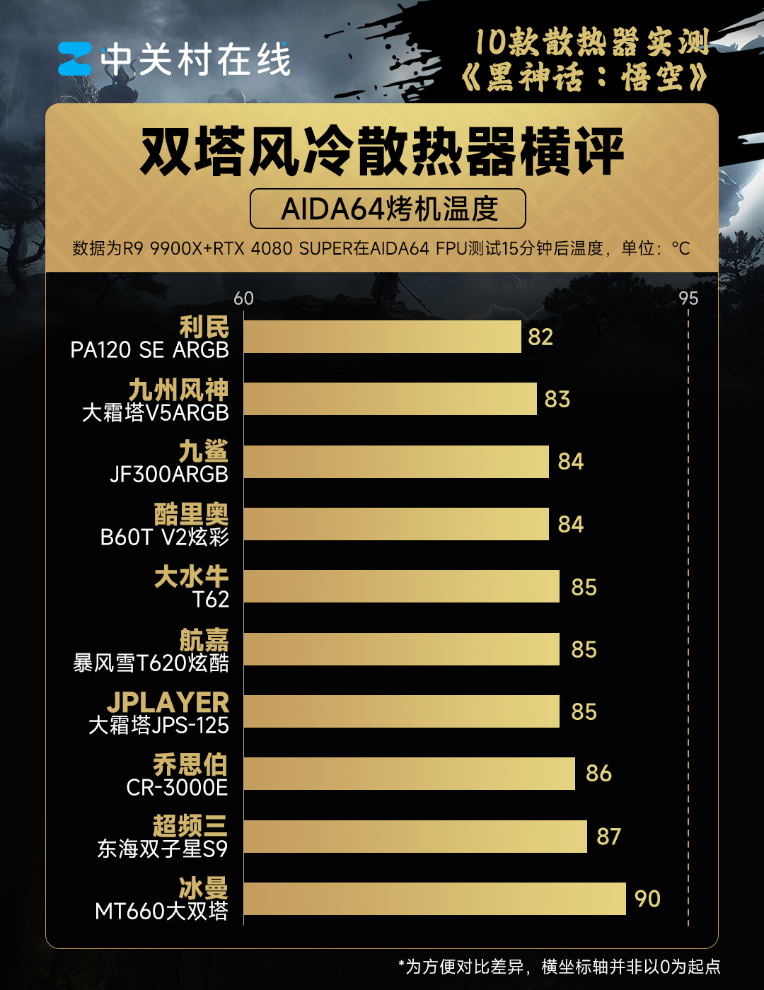 《黑神话:悟空》的爆火又一次带火了DIY市场,而且AMD还恰到好处地发布了新的锐龙9 9900X新品,游戏玩家关注的体验出来帧数之外,长时间游戏的稳定性也是重要的一环,为了测试不同散热器在游戏场景下的真实表现,我们启动了本次双塔风冷散热器的横评。