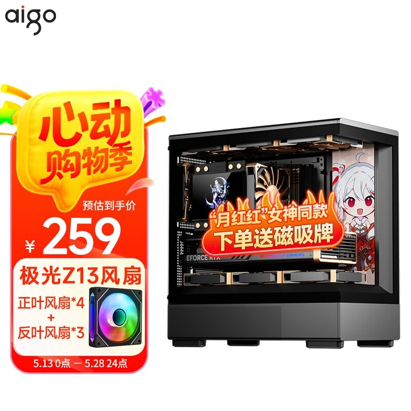 爱国者 星璨 小岚台式电脑电竞游戏主机箱海景房支持240水冷MATX机箱 星璨小岚 黑+极光Z13风扇4正3反