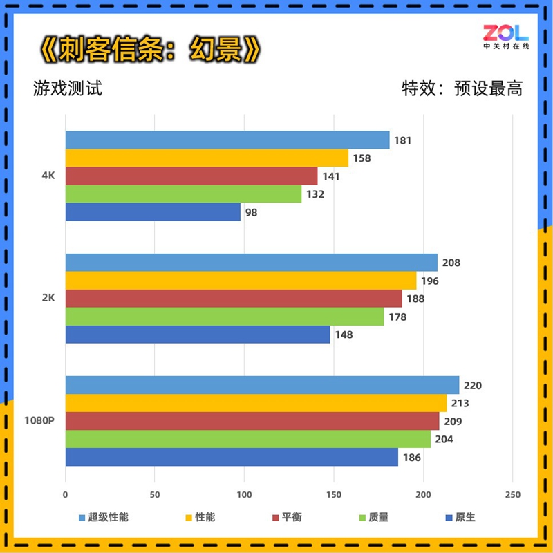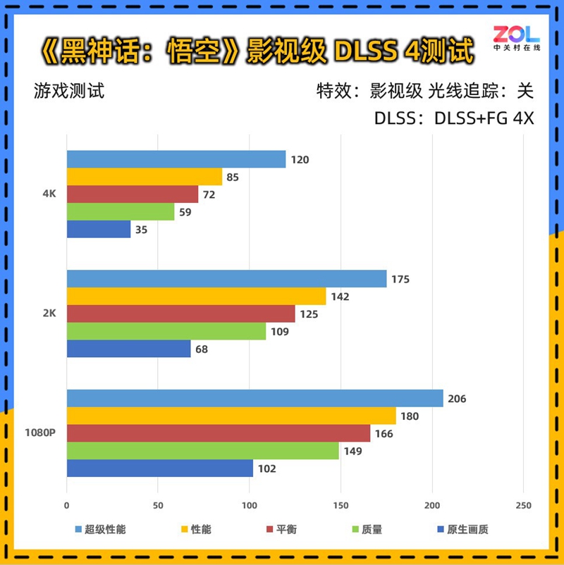 在《刺客信条:幻景》中,我们关闭游戏的自适应帧率,分别测试DLSS不同挡位与原生画质下的差异。微星 RTX5080 16G神龙首发限定版在4K分辨率原生画质下即可达到百帧的成绩,而在DLSS超级性能挡位中,突破180帧。