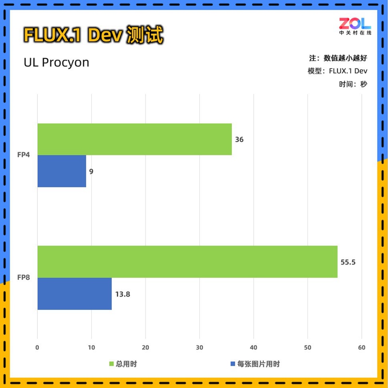 本次测试UL提供了FLUX.1Dev绘画模型的FP4测试,而FP4数据类型的支持也是微星 RTX5080 16G神龙首发限定版显卡的最新特性。该模型在FP16上运行需要超过23GB的显存,这意味着它只能由每一代的旗舰产品RTX 4090,RTX 5090和专业GPU来支持。但FP4只需要不到一半的显存。而且FP4使用NVIDIA TensorRT提供的量化方法,几乎没有质量损失。更小的显存消耗让微星 RTX5080 16G神龙首发限定版显卡能够更加高效地运行在本地。