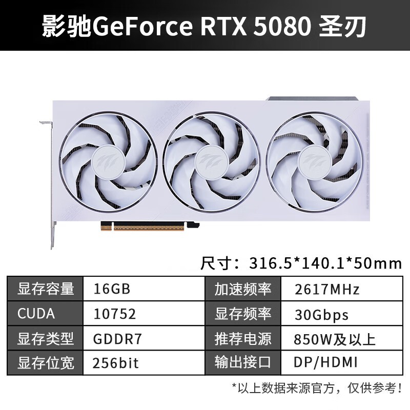 影驰 RTX5080 DLSS450系列新品显卡 电竞游戏设计图形渲染deepseek AI 台式机电脑显卡 RTX5080圣刃
