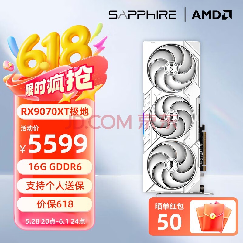 蓝宝石AMD 9070XT/7900XT/XTX 电竞游戏设计台式机电脑deepseek AI人工智能渲染直播追光显卡 RX 9070 XT 16G 极地