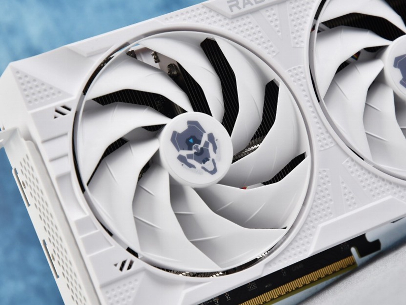 瀚铠 RX9060XT 8G合金OC配备了双风扇散热方案,搭配高效热管散热器,能够有效应对180W左右的TGP。风扇采用了三折鲨鱼鳍的叶片,能够在保持较低噪音水平的同时提供充足的风量。