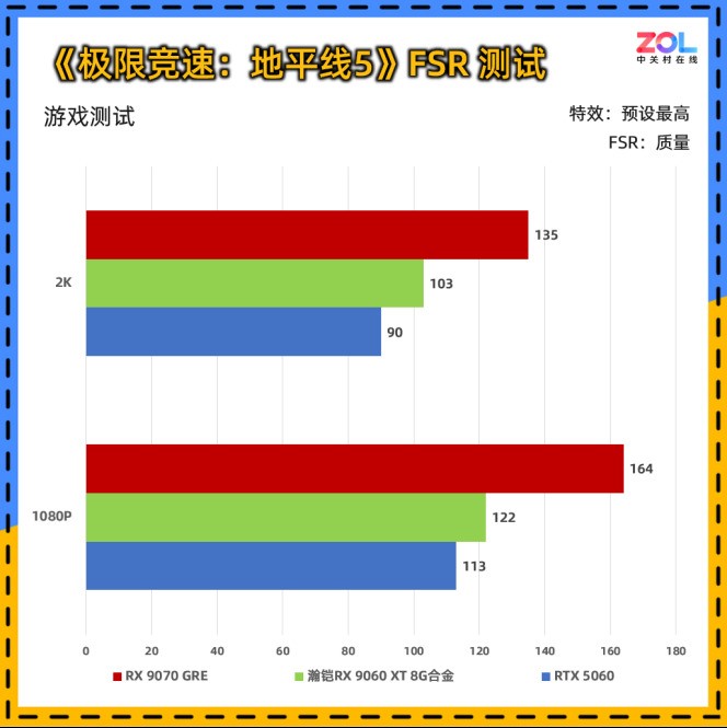 在大家关注的游戏性能方面,先来看我们常测的3A大作《极限竞速:地平线5》。
