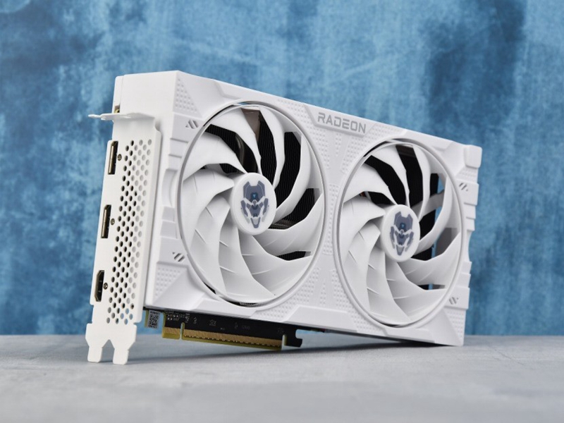 瀚铠 RX9060XT 8G合金显卡在外观设计上延续了合金系列的一贯风格,棱角分明的设计搭配纯色的设计显得简洁又富有科技感。这款显卡提供了黑色和白色两款配色,方便玩家搭配不同风格的平台。显卡尺寸为235.9×128.5×48.2mm,属于标准的双槽厚度显卡,能够兼容绝大多数机箱。