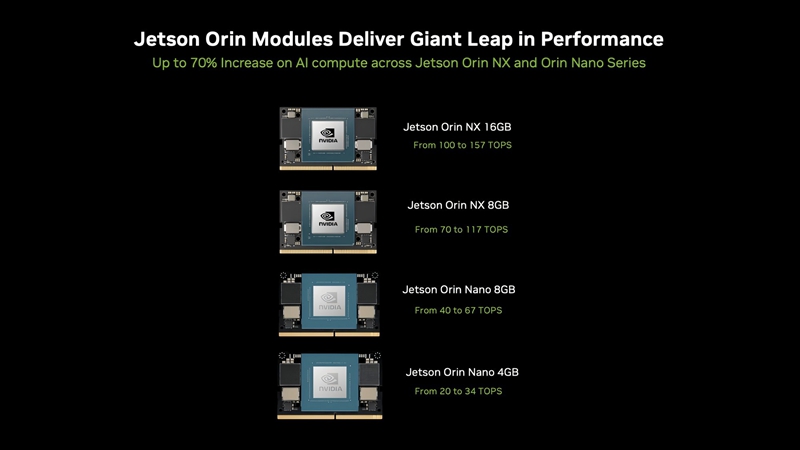 本次更新,包含现有的JetsonOrin NX和OrinNano系列模组设备也可以通过软件更新的方式获AI性能的提升。