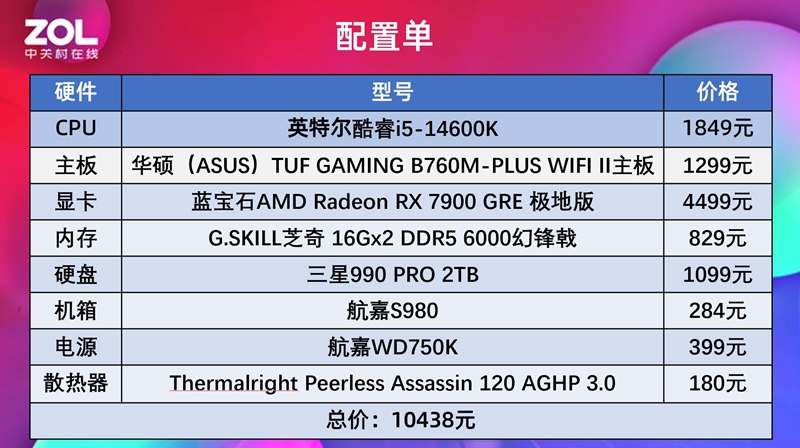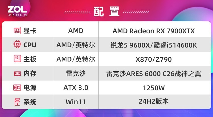 当然具体表现还是要通过实战测试才能得知,这次主要测试游戏性能以及稳定性两方面来验证AMD 锐龙5 9600X目前与隔壁平台的差距,测试平台如下: