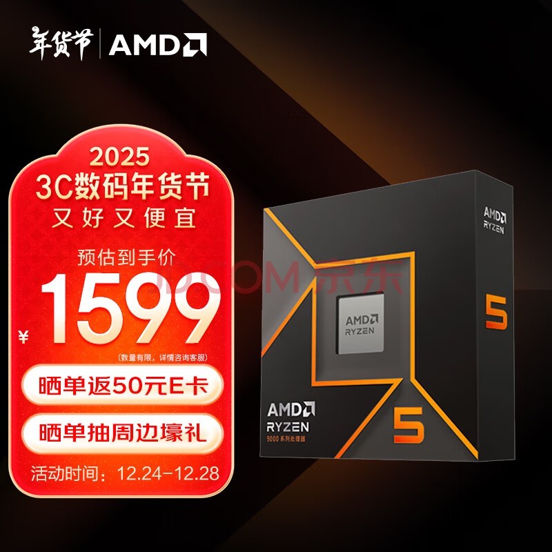 AMD 锐龙 5 9600X处理器(R5) 4nm 6核12线程 加速频率至高5.4GHz盒装CPU 畅玩无畏契约/CSGO