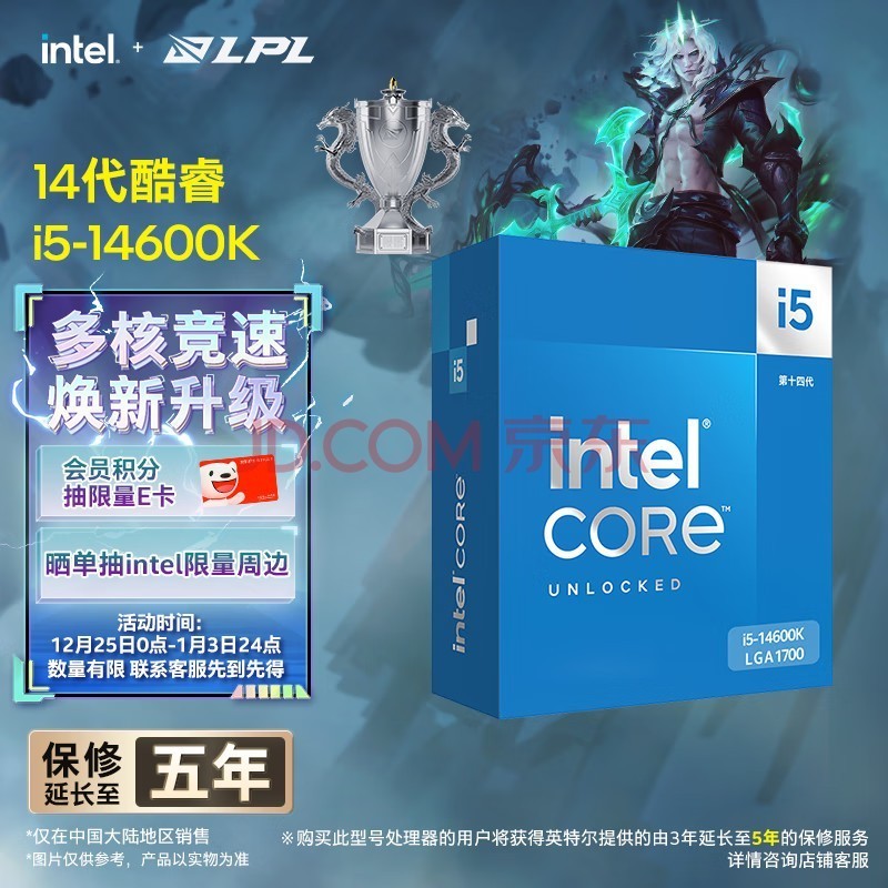 英特尔(Intel) i5-14600K 酷睿14代 14核20线程 睿频至高5.3Ghz 五年质保 台式机盒装CPU 畅玩黑神话悟空