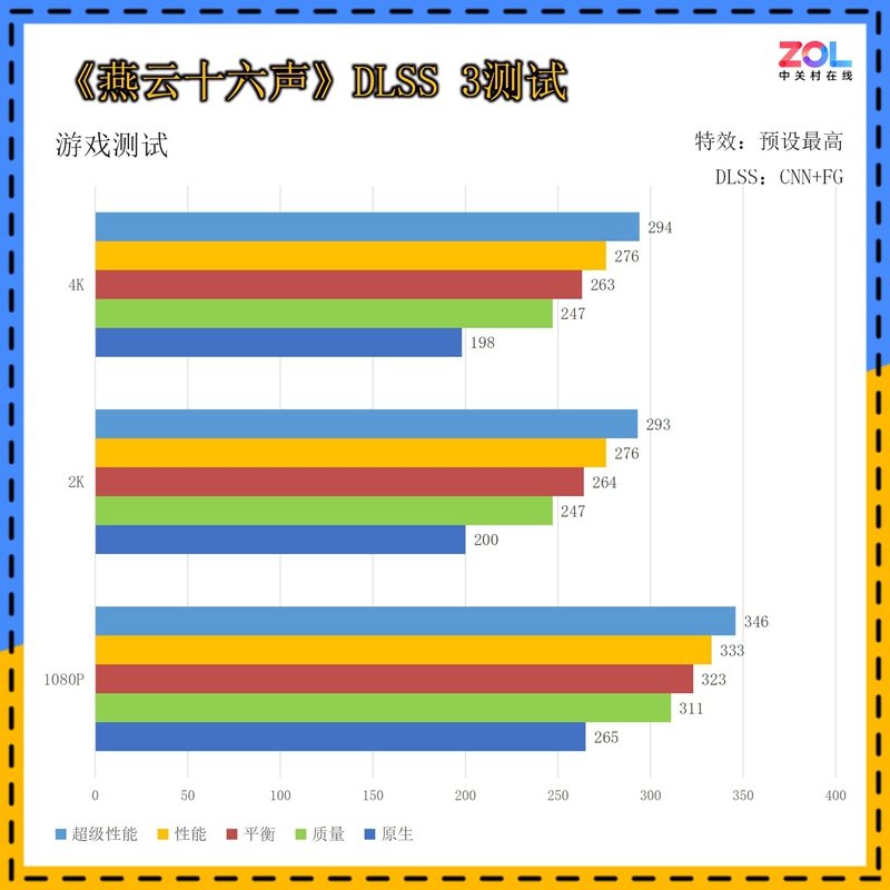 《燕云十六声》是网易开发的一款国产武侠大作,在DLSS 2的测试中,除了DLSS质量挡位与原生画质拉开差距,其他DLSS挡位出现了明显的则出现了明显的帧数瓶颈。至少从图形显示来看,低分辨率下的分数应该更高,似乎是与9800X3D的适配和优化出现了问题。