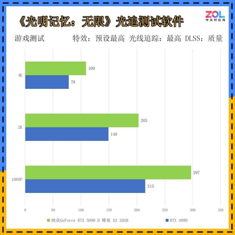映众 RTX5090 D 曜夜 X3 32GB显卡对比RTX 4090,提升幅度高达46%!