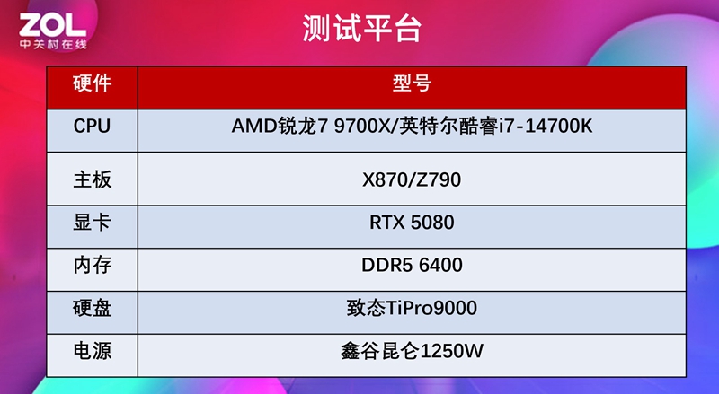 而单从价格而言似乎没什么可说的,因为AMD锐龙7 9700X目前电商售价比低了800元,不过CPU肯定不能只看价格,实际表现也非常重要,尤其是游戏帧数方面会受到多方影响,AMD锐龙7 9700X如果能以更低的价格获得更好的游戏帧数,那才符合AMD一贯的性价比路线,下面是测试平台。