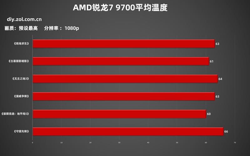 可以看到AMD锐龙79700X平均游戏温度在60摄氏度以上,最高也只有《守望先锋2》达到了66℃,对于CPU而言这个温度非常健康,完全不会对CPU造成负面影响,这也是AMD锐龙9000系列处理器一大亮点,能耗比极高。