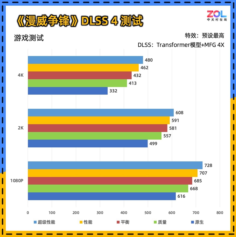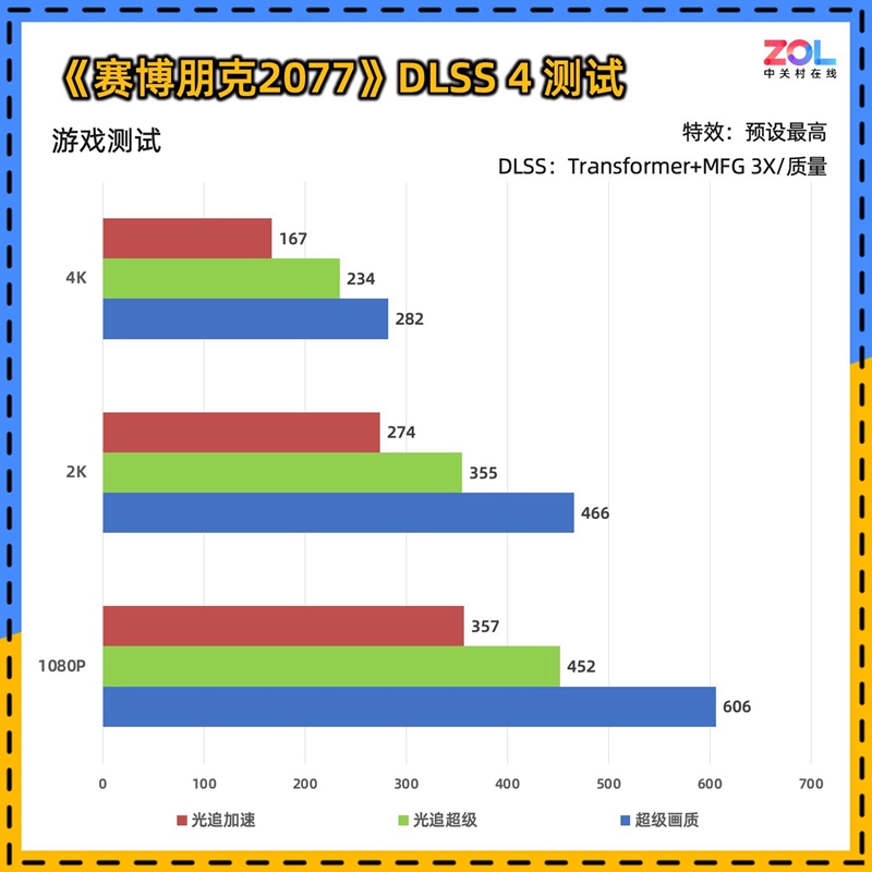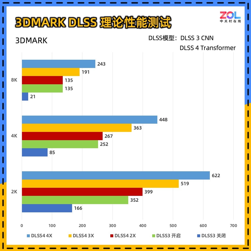 DLSS 3测试也出现了DLSS2中的问题,但4K分辨率索泰GEFORCE RTX 5090 D 32GB SOLID OC大部分DLSS成绩均在200帧以上,超级性能更是达到了291帧。