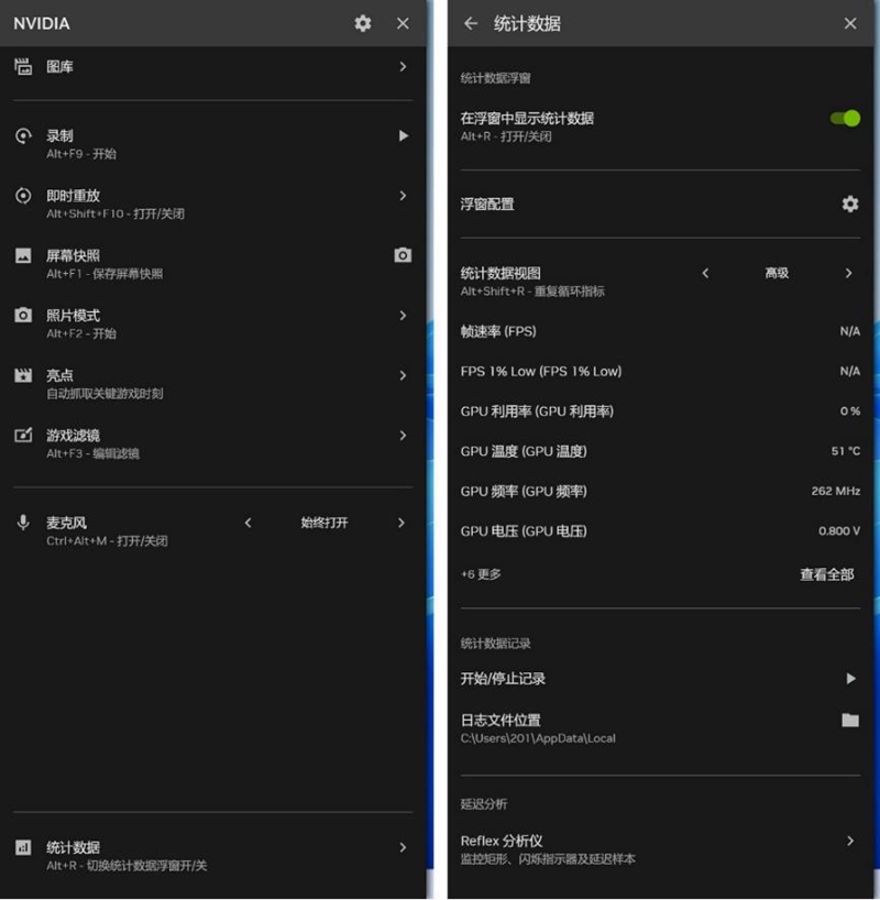 NVIDIA信息浮窗是游戏中很好的辅助工具,要开启此功能,需要在APP主界面的设置一栏中,开启按钮,之后按ALT+Z即可呼出边栏。