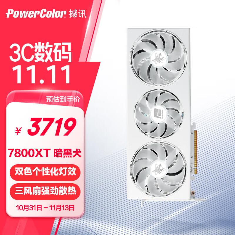 撼讯 RX7800XT 16GB 暗黑犬白色黑神话悟空游戏电竞独立显卡