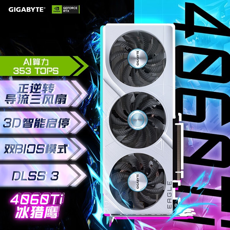 技嘉 RTX4060Ti Eagle OC ICE 8G DLSS3 电竞游戏黑神话:悟空4060Ti显卡