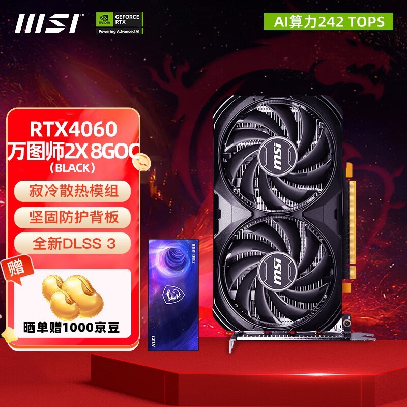微星 RTX4060Ti 魔龙姬X万图师全新台式电脑电竞游戏宣染设计智能学习独立显卡 4060 万图师2X OC 8G