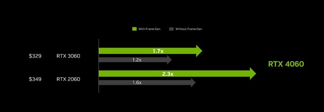 相比于老款RTX3060 12G,RTX 4060的跑分提升了11%,符合英伟达官方公布的数据。官方数据还显示,开启RTX 40系列显卡独有的帧生成技术后,RTX4060性能为RTX 3060的1.7倍,关闭后为1.2倍。RTX4060桌面显卡规格与移动端基本一致,包括3072个CUDA核心、8GB 128bit显存、115W功耗和110W平均游戏功耗,较上一代有明显下降。