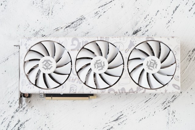 而且为了增加显卡的灵动美感,在梦幻变彩欧泊白设计的基础上,增添了玩趣十足的涂鸦点缀,让显卡外观平添些许活泼灵动之感,乐趣横生。